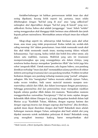 adikodrati. Kedua, bahwa akal adalah ’pengganggu’ ’iman’. Sebab “terlalu”