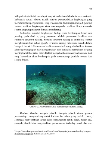 rusaknya terumbu karang. Kondisi terumbu karang di Indonesia cukup