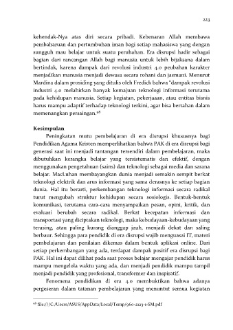 Pendidikan Agama Kristen memperlihatkan bahwa PAK di era disrupsi bagi