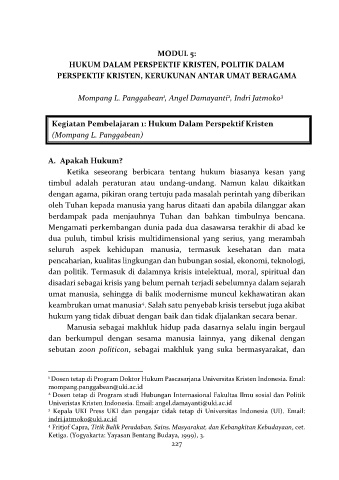 Kegiatan Pembelajaran 1: Hukum Dalam Perspektif Kristen
