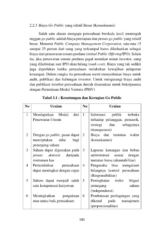 Tabel 3.1 : Keuntungan dan Kerugian Go Public