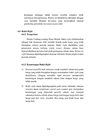 harga jual dari right tersebut. Jika harga jual lebih besar dari
