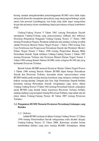 kurang mampu mengakomodasi penyelenggaraan BUMD serta tidak dapat