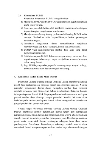 1) Monopoli BUMD atas Sumber Daya alam tertentu dapat mematikan