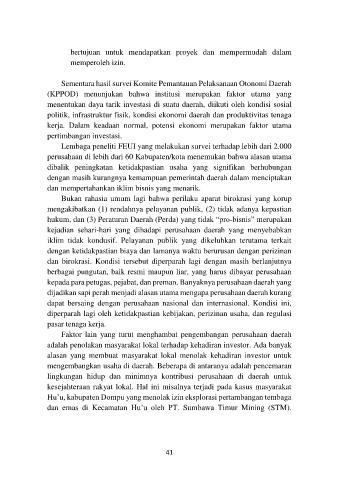 hukum, dan (3) Peraturan Daerah (Perda) yang tidak “pro-bisnis” merupakan