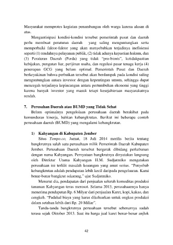 bangkrutnya salah satu perusahaan milik Pemerintah Daerah Kabupaten
