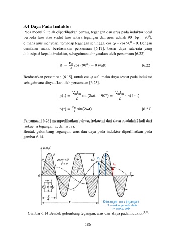 Gambar 6.14 Bentuk gelombang tegangan, arus dan daya pada induktor [1,16]