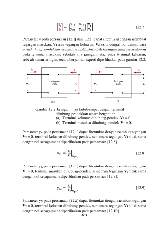 Parameter y21 pada persamaan [12.2] dapat ditentukan dengan membuat tegangan