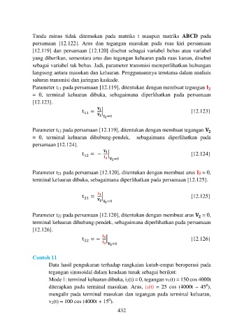 Parameter t22 pada persamaan [12.120], ditentukan dengan membuat arus = 0,