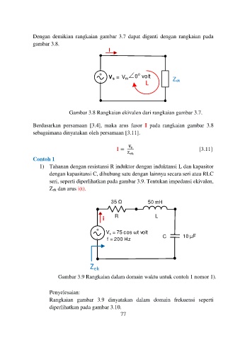 Berdasarkan persamaan [3.4], maka arus fasor I pada rangkaian gambar 3.8