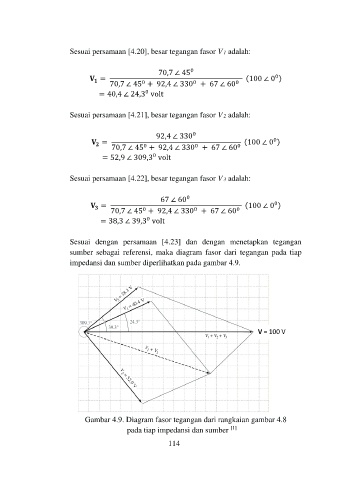 Sesuai persamaan [4.20], besar tegangan fasor V1 adalah: