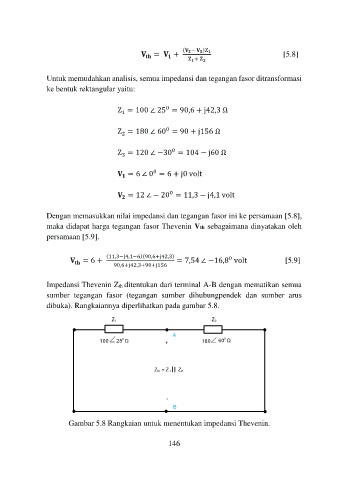 maka didapat harga tegangan fasor Thevenin Vth sebagaimana dinyatakan oleh