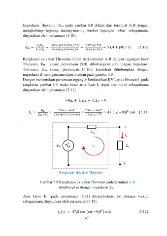 Gambar 5.9 Rangkaian ekivalen Thevenin pada terminal A-B