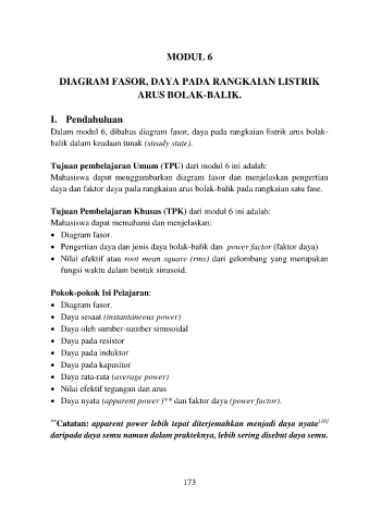 Dalam modul 6, dibahas diagram fasor, daya pada rangkaian listrik arus bolak-