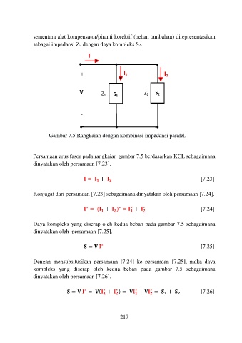 Daya kompleks yang diserap oleh kedua beban pada gambar 7.5 sebagaimana
