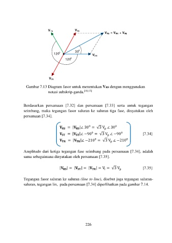 Amplitudo dari ketiga tegangan fase seimbang pada persamaan [7.34], adalah