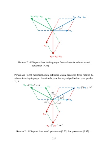 Persamaan [7.34] memperlihatkan hubungan antara tegangan fasor saluran ke
