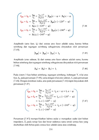 fase, Ip, pada persamaan [7.45], sama dengan nilai arus saluran, Il, pada persamaan