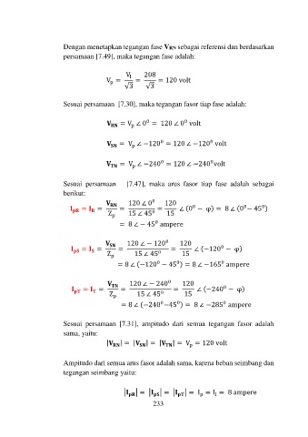 persamaan [7.49], maka tegangan fase adalah: