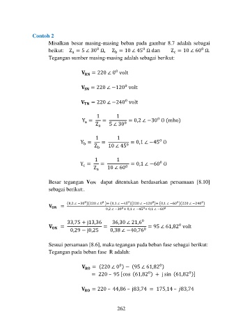 Sesuai persamaan [8.6], maka tegangan pada beban fase sebagai berikut: