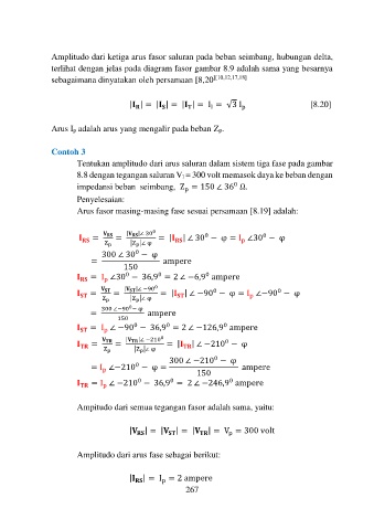 Arus fasor masing-masing fase sesuai persamaan [8.19] adalah: