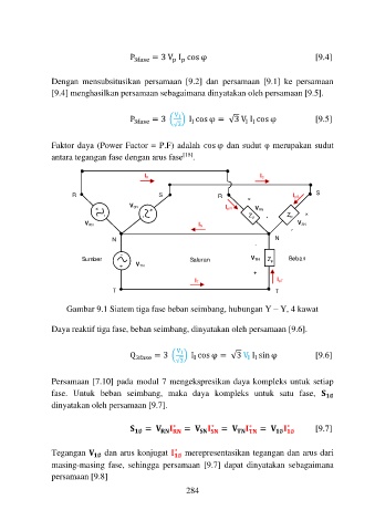 Daya reaktif tiga fase, beban seimbang, dinyatakan oleh persamaan [9.6].