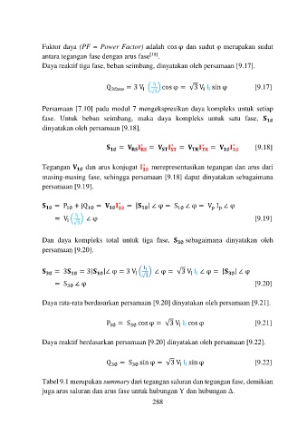 Tabel 9.1 merupakan summary dari tegangan saluran dan tegangan fase, demikian