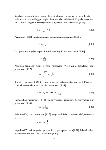 kondisi resonansi dinyatakan oleh persamaan [9.33].