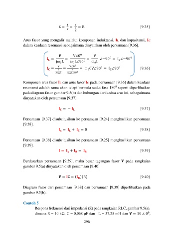 Komponen arus fasor IL dan arus fasor IC pada persamaan [9.36] dalam keadaan