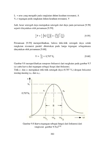 Gambar 9.8 memperlihatkan renspons frekuensi dari rangkaian pada gambar 9.5