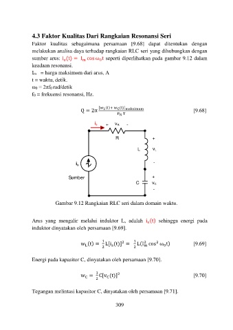 Gambar 9.12 Rangkaian RLC seri dalam domain waktu.