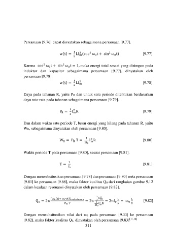 [9.82], maka faktor kualitas Q0, dinyatakan oleh persamaan [9.83] [11,14]