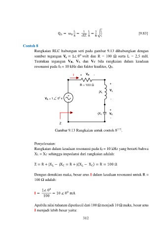 Rangkaian RLC hubungan seri pada gambar 9.13 dihubungkan dengan
