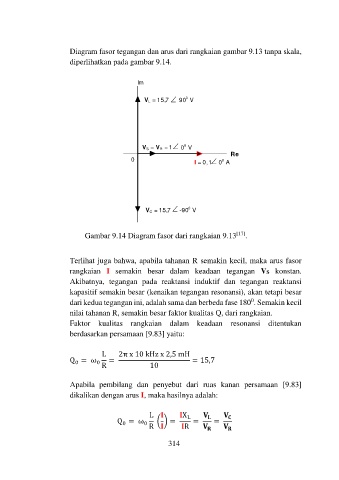 Diagram fasor tegangan dan arus dari rangkaian gambar 9.13 tanpa skala,