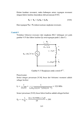 gambar 9.15 dan faktor kualitas Q0 serta tegangan pada L (dan C).