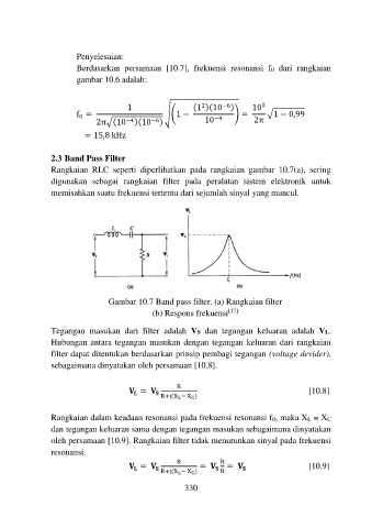oleh persamaan [10.9]. Rangkaian filter tidak menurunkan sinyal pada frekuensi
