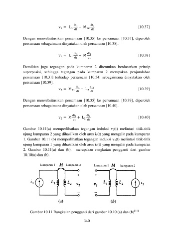 1. Gambar 10.11 (b) memperlihatkan tegangan induksi v1(t) melintasi titik-titik