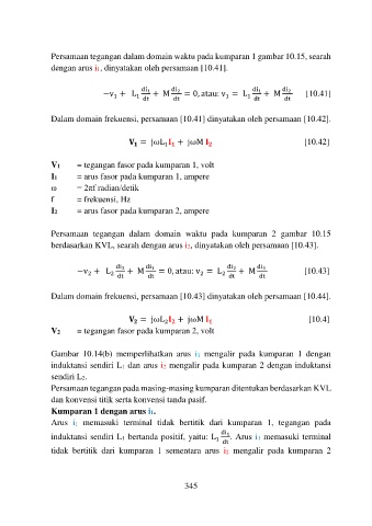 Persamaan tegangan dalam domain waktu pada kumparan 2 gambar 10.15