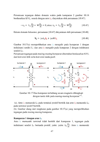 berdasarkan KVL, searah dengan arus i2, dinyatakan oleh persamaan [10.47].