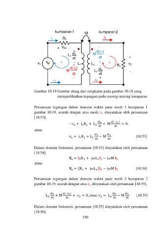 gambar 10.19, searah dengan arus mesh i1, dinyatakan oleh persamaan