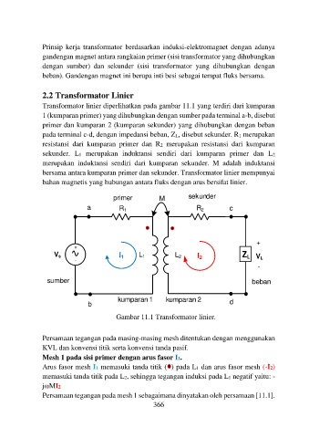 Transformator linier diperlihatkan pada gambar 11.1 yang terdiri dari kumparan