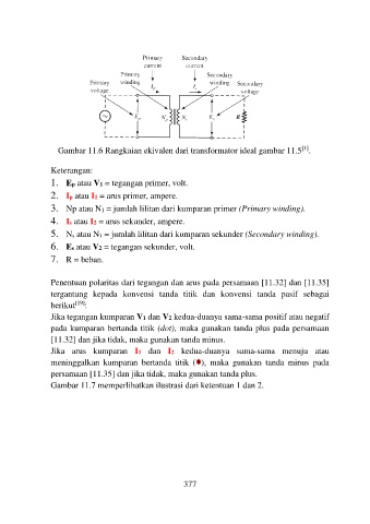 Gambar 11.6 Rangkaian ekivalen dari transformator ideal gambar 11.5 .