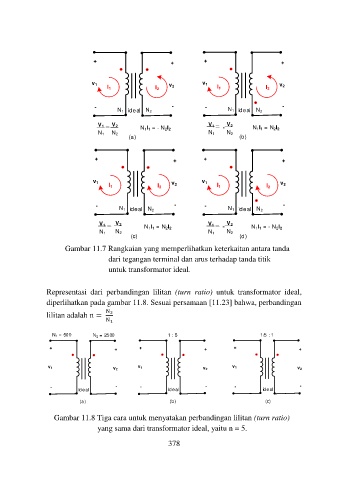 Gambar 11.8 Tiga cara untuk menyatakan perbandingan lilitan (turn ratio)
