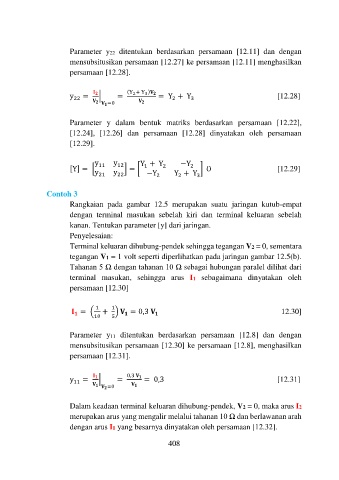 Parameter y22 ditentukan berdasarkan persamaan [12.11] dan dengan