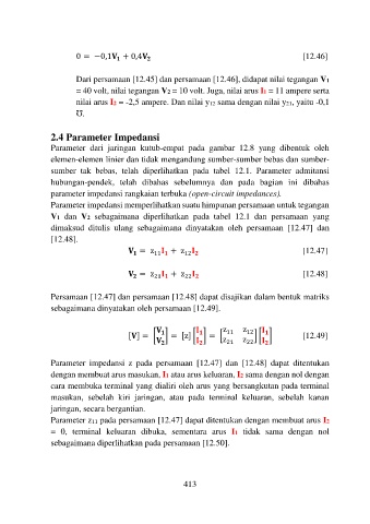 Parameter impedansi z pada persamaan [12.47] dan [12.48] dapat ditentukan