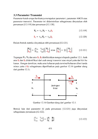 Tegangan V1, V2 dan arus I1, I2 didefinisikan mengacu kepada gambar 12.1. Arah
