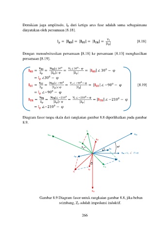 Gambar 8.9 Diagram fasor untuk rangkaian gambar 8.8, jika beban