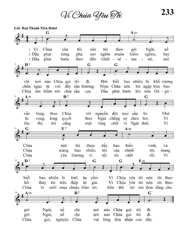 biết bao nhiêu là tình âu yếm. Vì Chúa yêu tôi nên tôi theo