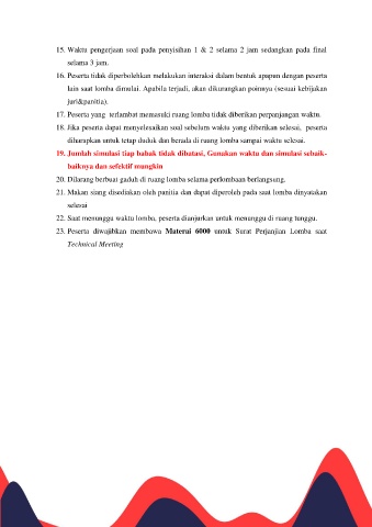 17. Peserta yang terlambat memasuki ruang lomba tidak diberikan perpanjangan waktu.
