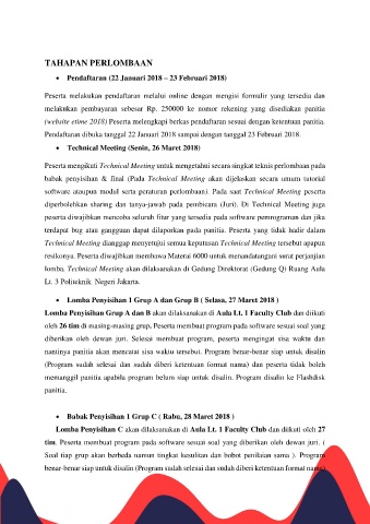 lomba. Technical Meeting akan dilaksanakan di Gedung Direktorat (Gedung Q) Ruang Aula